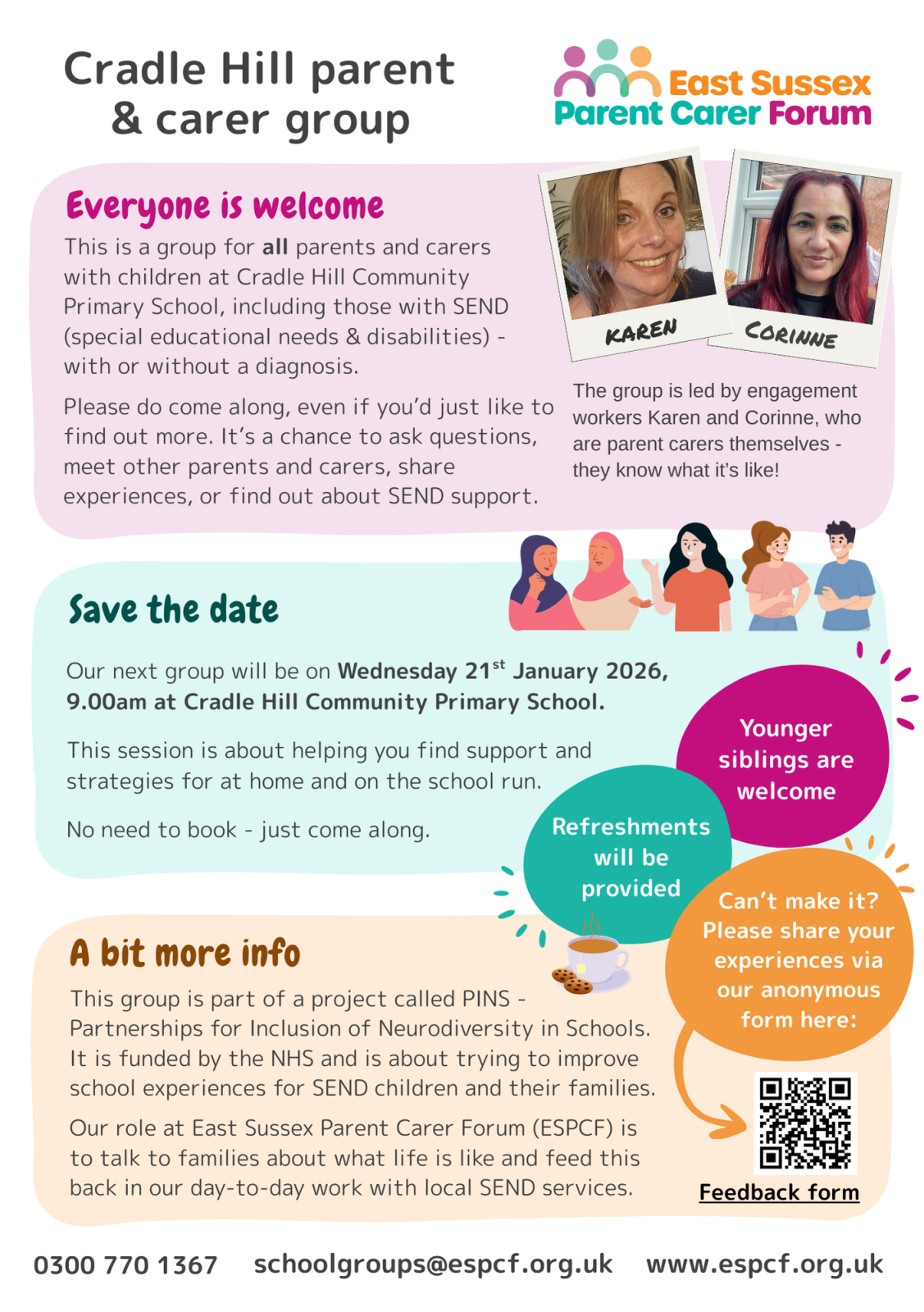 We are excited to be joined by the Parent Carer Forum for our SEND coffee morning in Term 3.