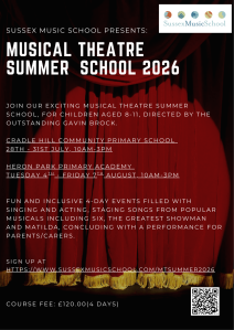 Children also have the opportunity to take part in different instrumental lessons through Sussex Music School during the school day - please see flyer below